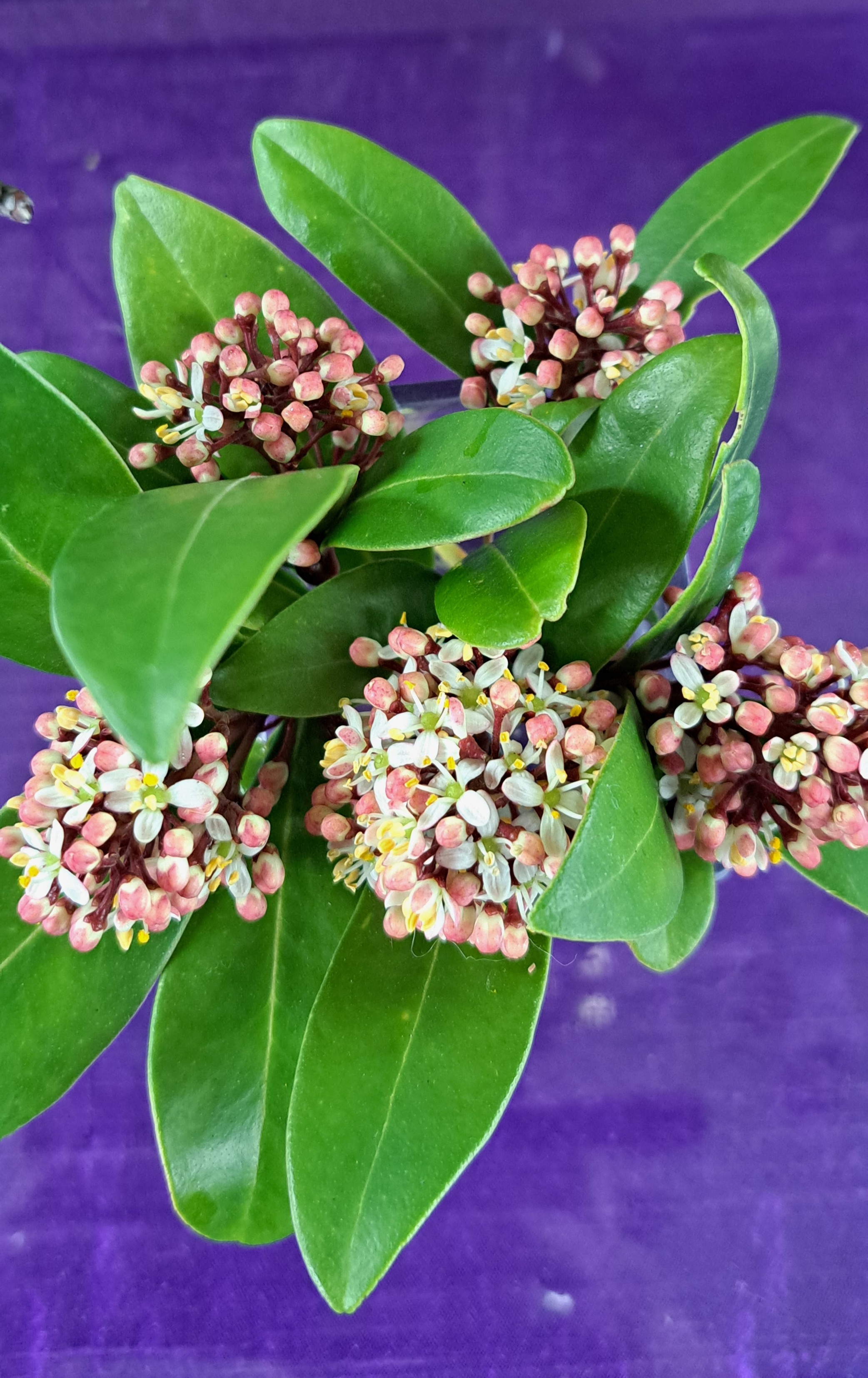 In het midden van de schikking bevindt zich een driekleurig viooltje. Het viooltje met zijn kleine bloemen symboliseert de dienstbaarheid en nederigheid. Vanaf de Paaskaars slingert de Hedera naar de schikking, als teken van Gods trouw.